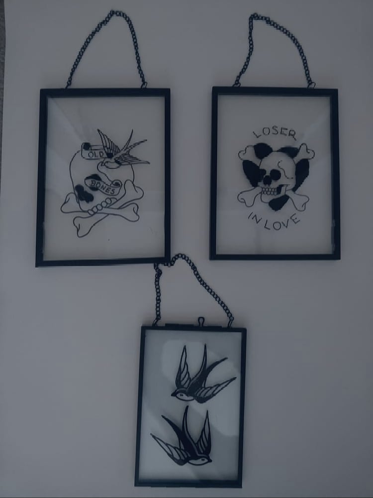 Hand painted glass frames.